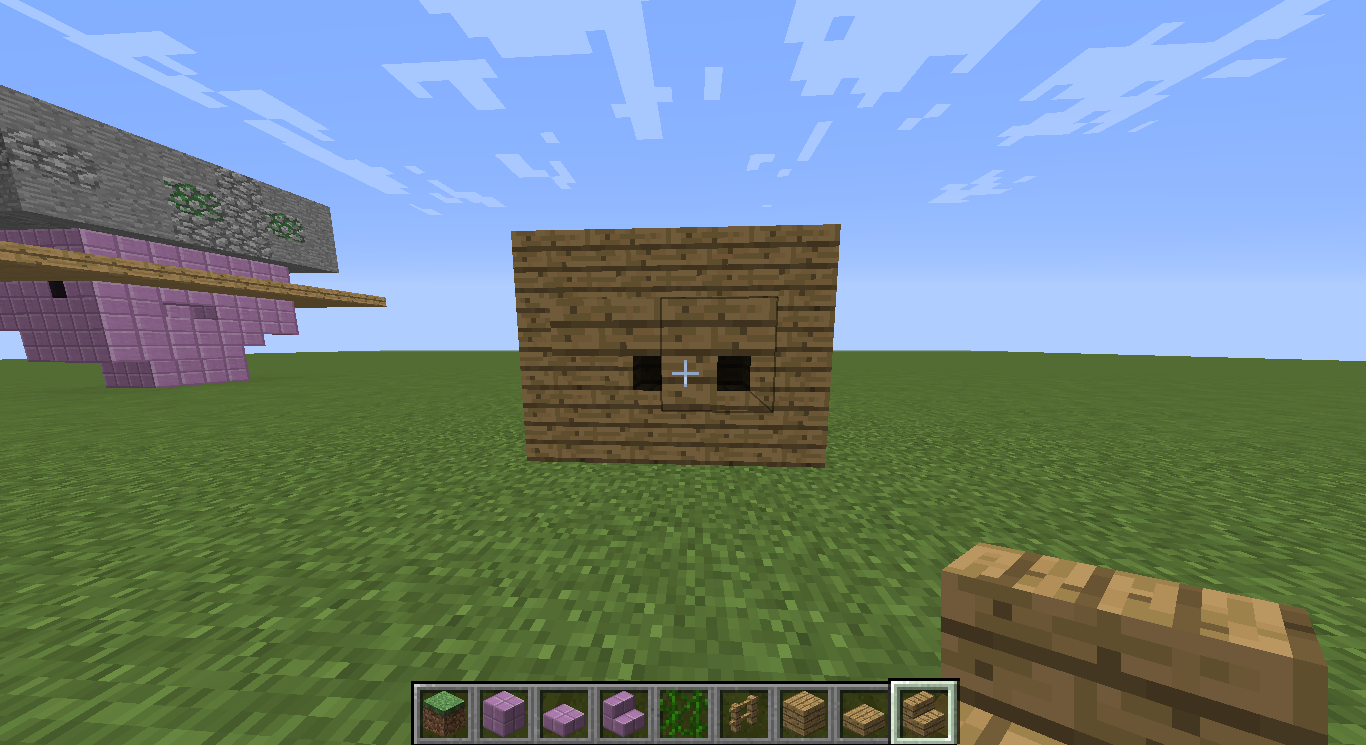 1. make a thingy of wooden planks 3 blocks tall, 3 blocks wide, and 2 blocks long