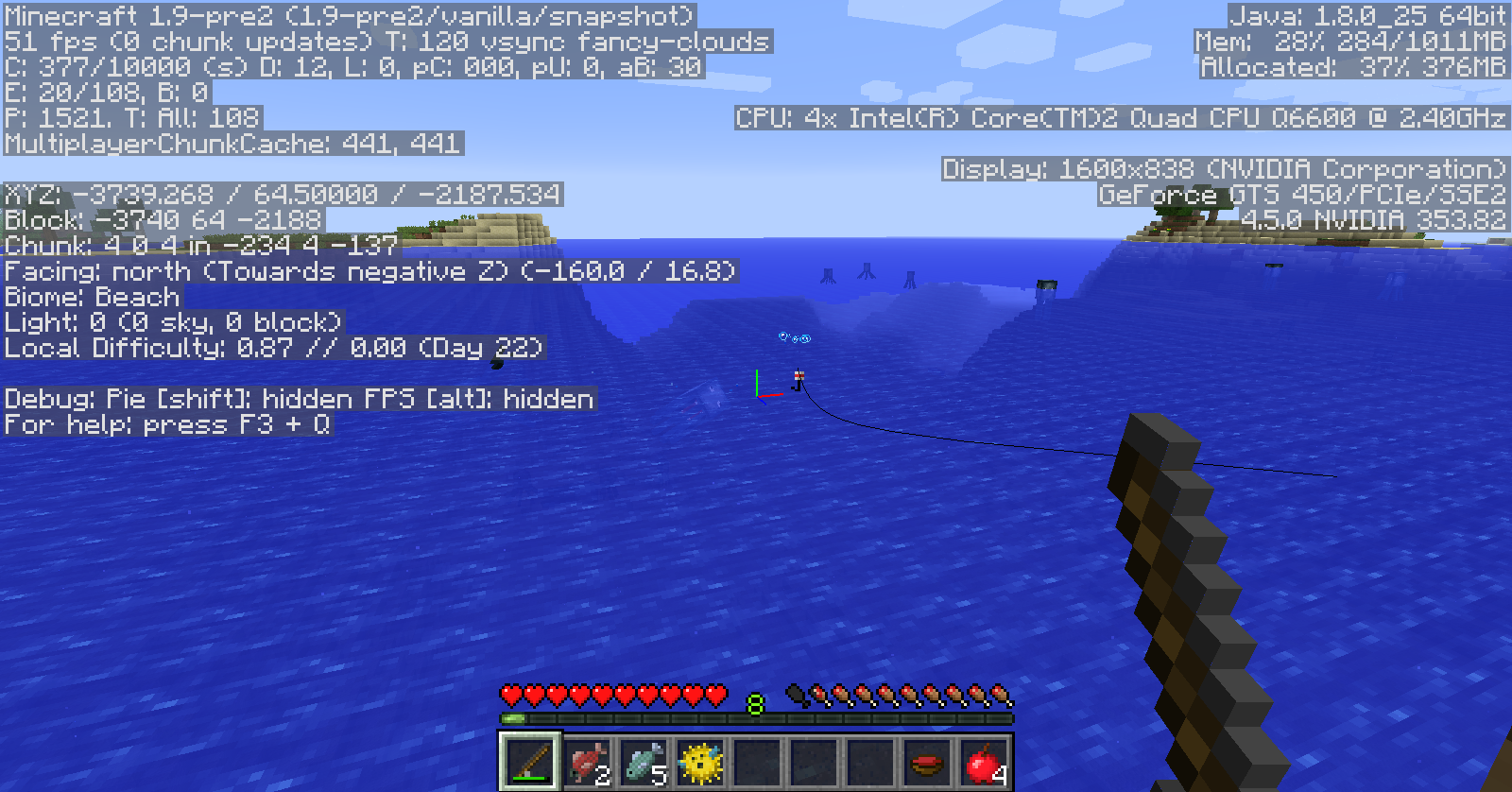 When I use the Fishing Pole, the line is floating beside the pole.