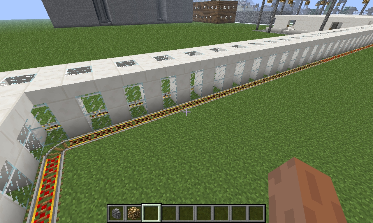 Кстати, посмотрел на скриншоты, и скажу, что расстояние между каждым повторителем как максимум 6 блоков (1 блок после каждого повторителя - земля, а другие пять, ведущие к другому повторителю от этого блока, - красная пыль).