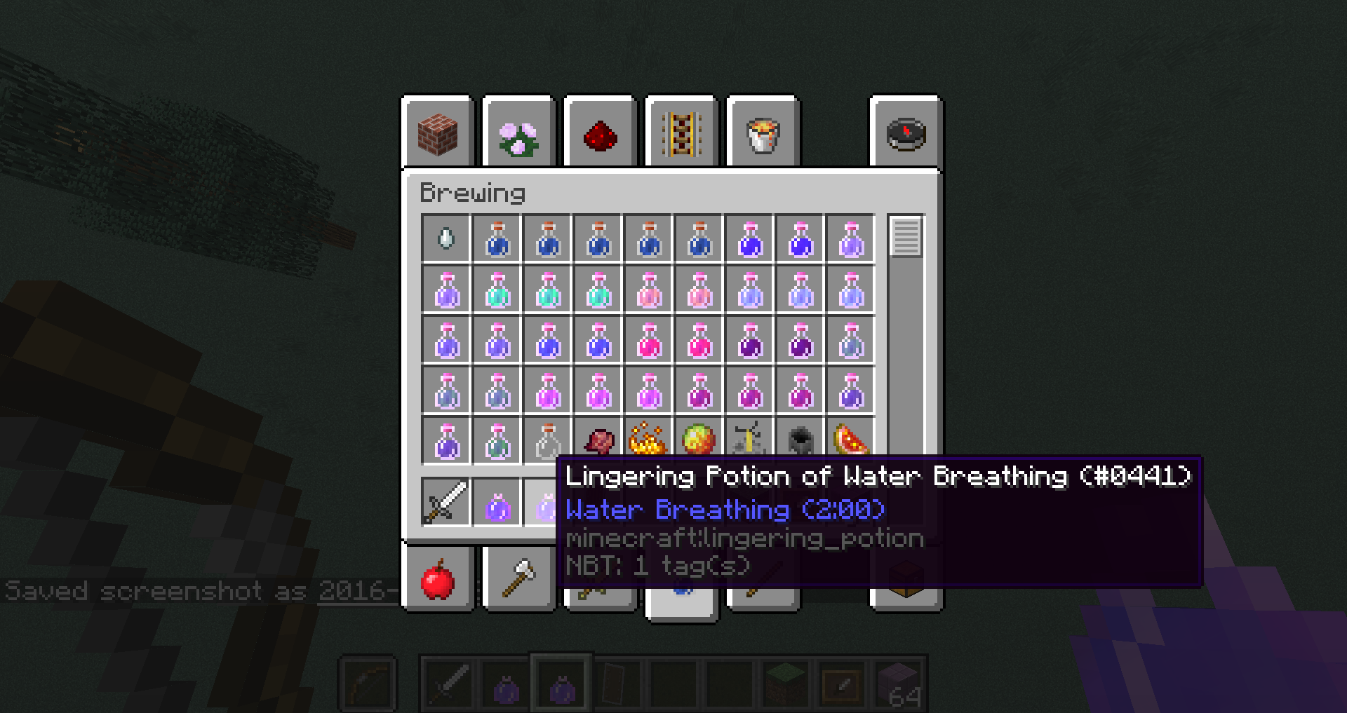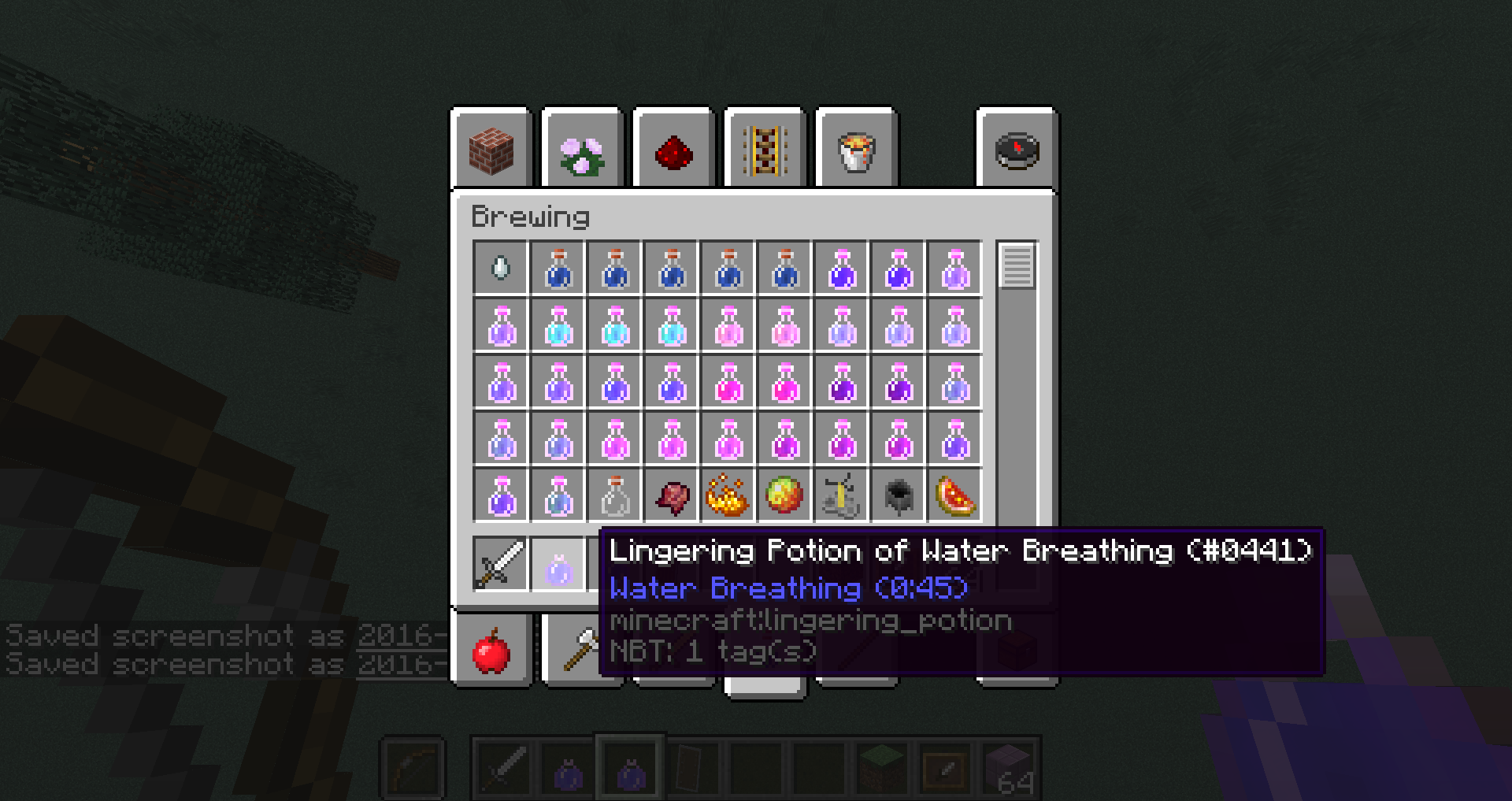 When I throw any potion more than 2:00 the effects stay for a very long time... It creates a lot of particles and they stay for around 10 - 16 seconds
