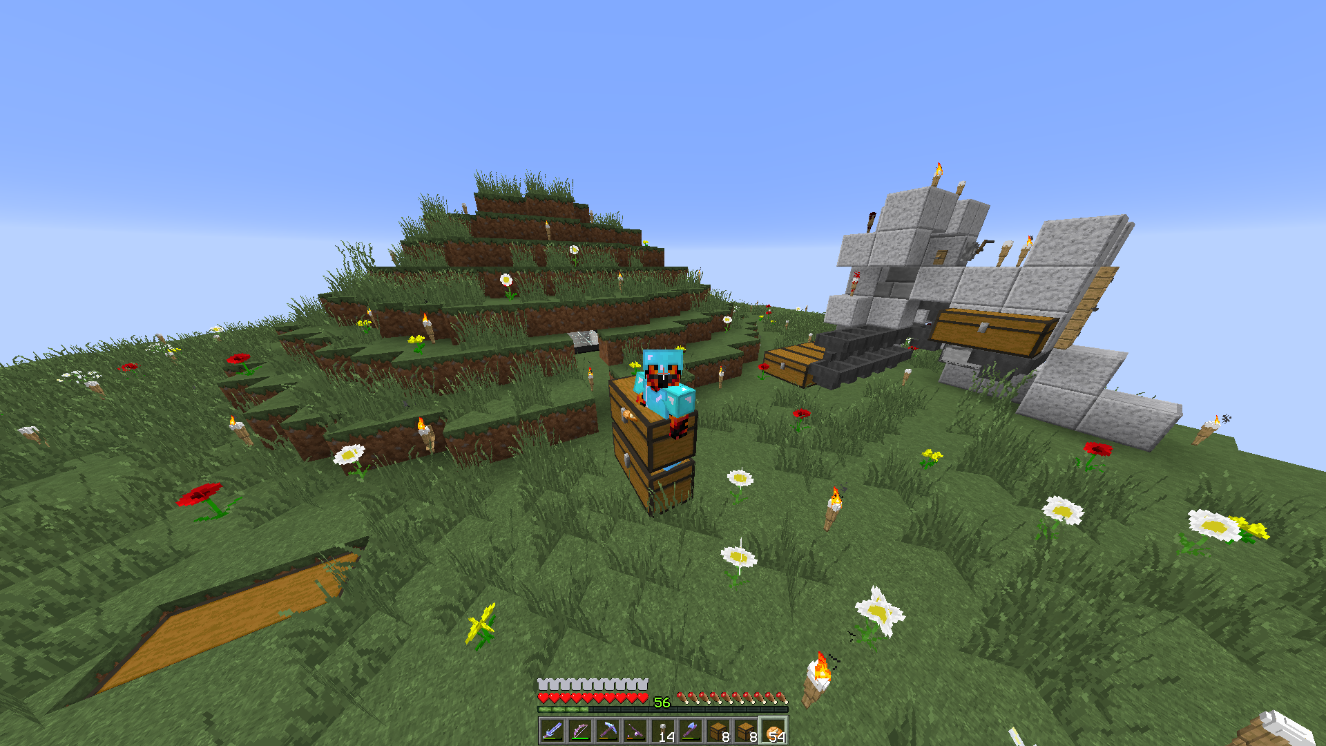 when i run and jump into a double chest i can glitch into it. When i do this im looking at the chest that is closer to me and when i jump i point at the chest behind that.