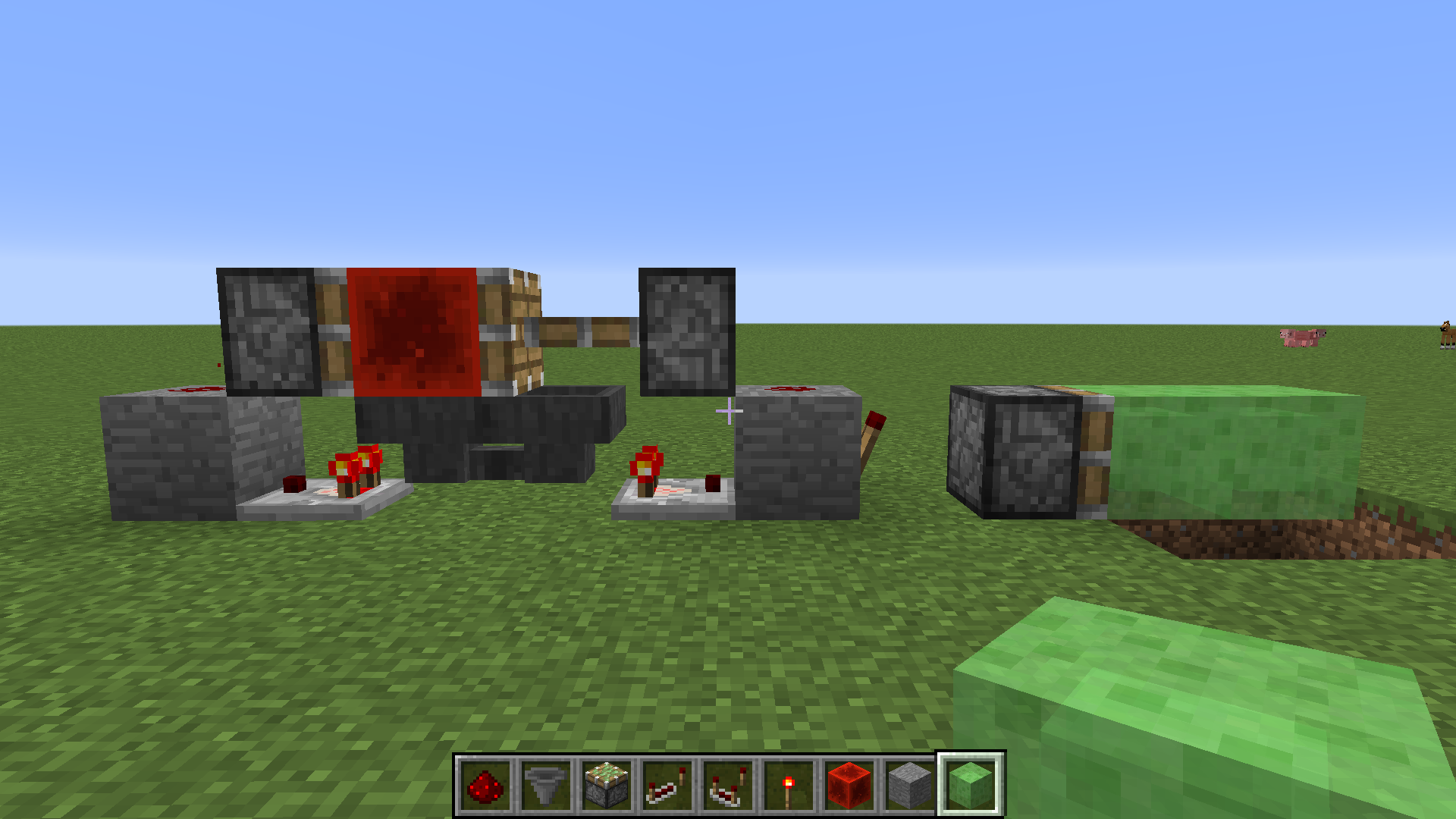 3. Move about 100 blocks away, then return, and observe duplicated slime block.