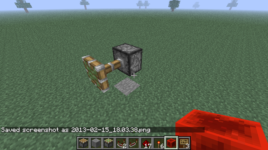 3. After the piston is powered, take out the first block of redstone, then the second.