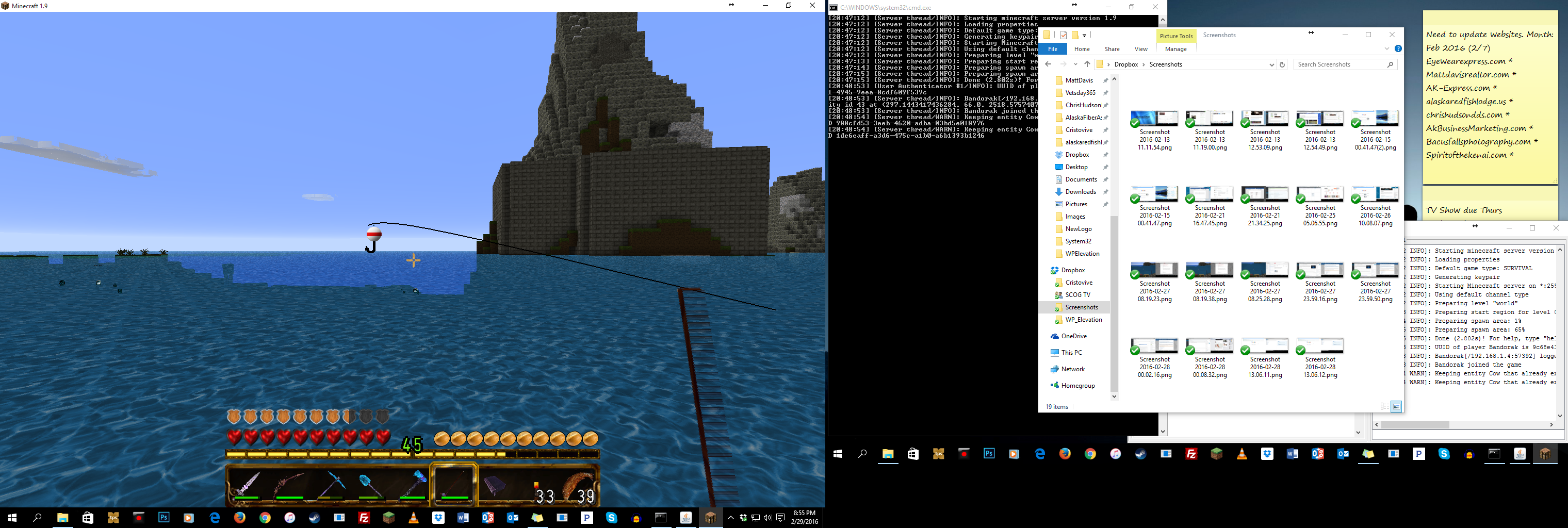 On a platform fishing, and bobber and hook float above the water when cast out. Bubble trails follow bobber mostly at close distance, but are not close together at a farther distance away.