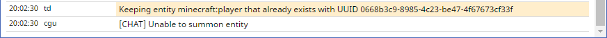 [Server thread/WARN]: Keeping entity null that already exists with UUID 0fec4f7a-6a9b-4c43-ad1b-235e7fbc9822How to reproduce