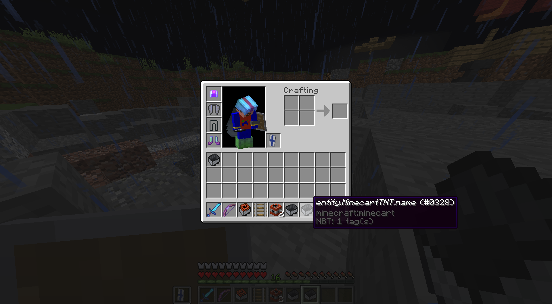 If you destroy a MinecartTNT entity it will give a minecart with a name "entity.MinecartTNT.name"