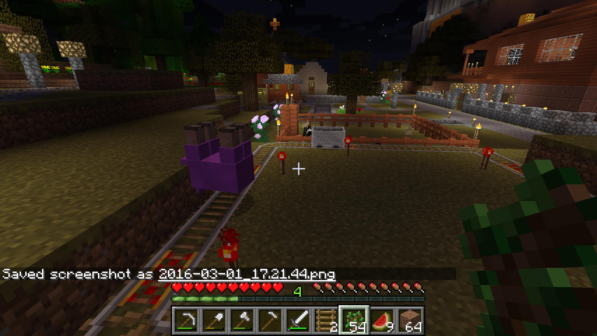 A minecart was left running in a loop with a purple sheep named Dinnerbone as passenger. On two occasions different players (with different client OSs) saw the sheep stationary above the track while the minecart travelled round. On other occasions the sheep moved with the minecart as normal.