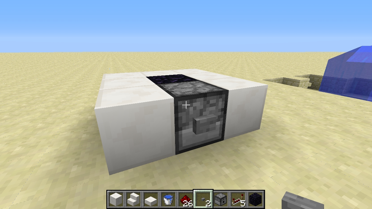2 - TNT dispensed into effectively blast-proof obsidian surrounded by blocks. No water above so explosion should destroy blocks. No blocks are actually damaged and player is not effected by the explosion. (Pictures 4&5)