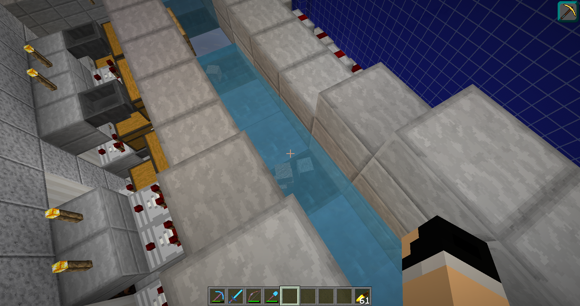 The bug: Items moving in water shouldn't get caught in the collision box of the hopper.