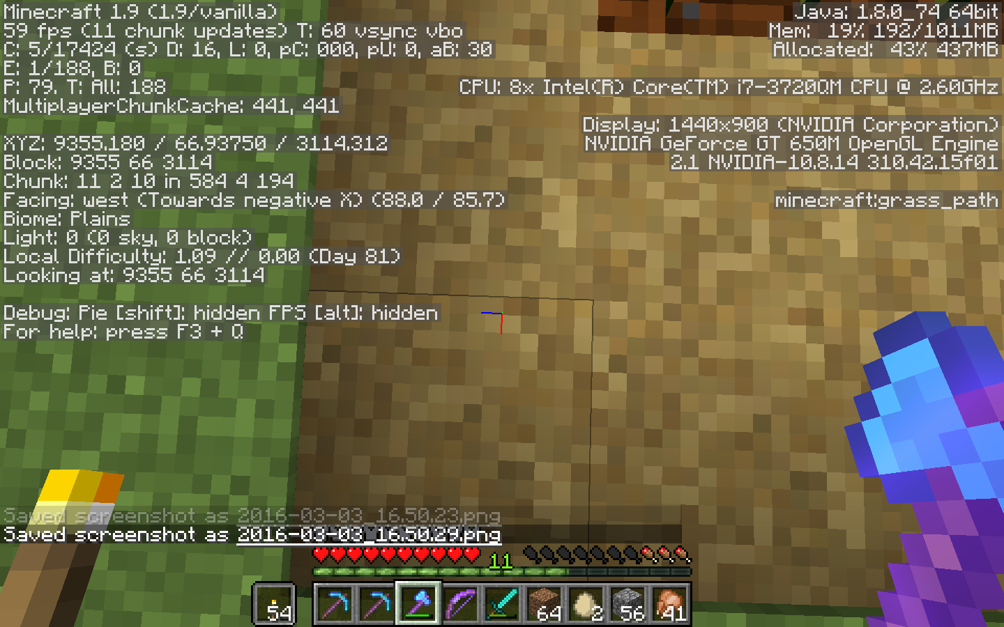 Images show, one from me standing on grass next to path block, Light level 15
