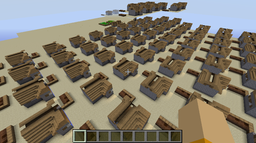 I made a minecraft world with Superflat. I used 25 sand, and then 1 bedrock. The sand glitched, and random villages spawned everywhere. You could walk through the blocks, so I checked that I was in Creative mode and not Spectator.