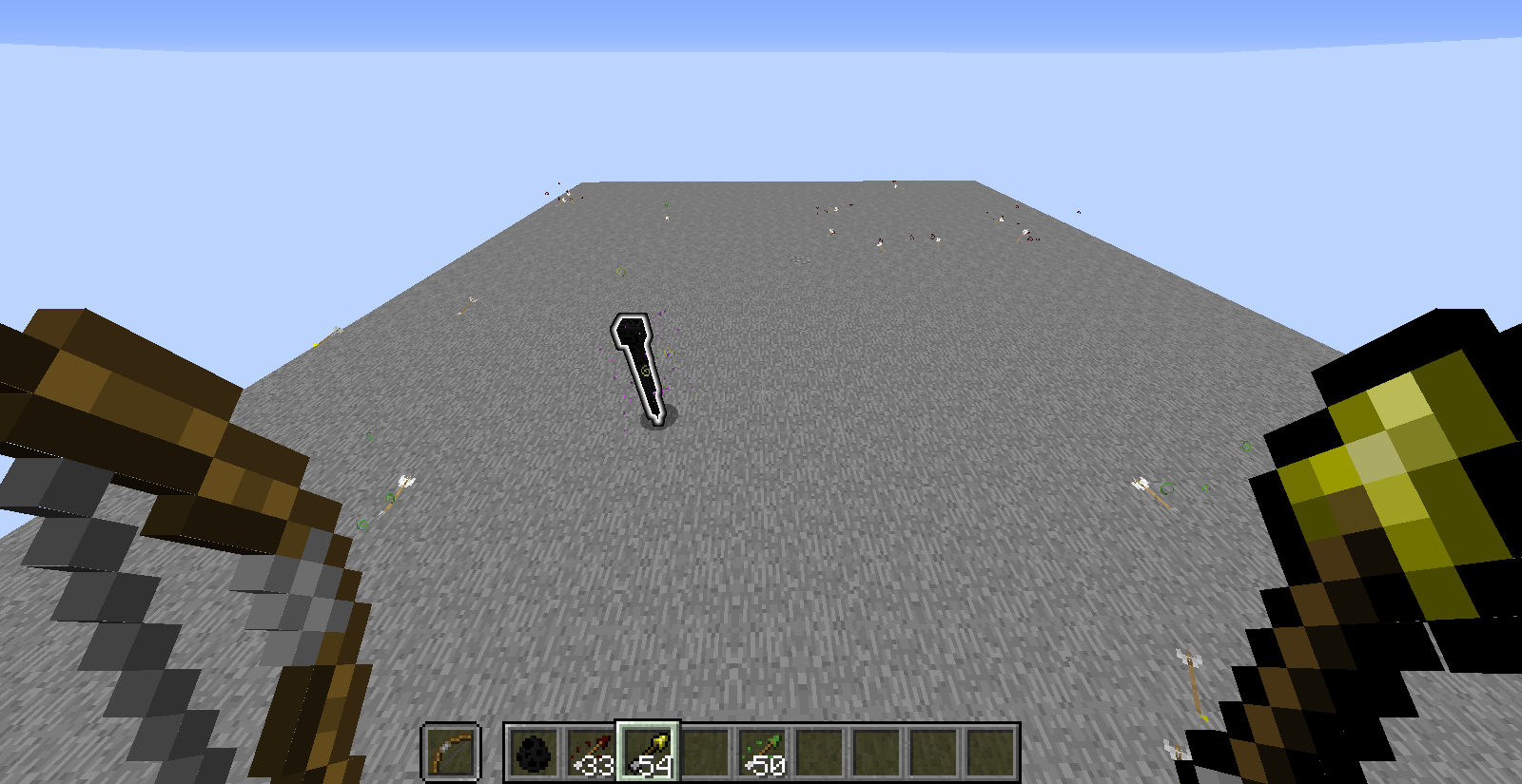so when you shoot enderman they are supposed to teleport away and not get hit by arrows but if the arrows are tipped they will still leave the potion effect on the enderman. this can be most clearly seen if you shoot an enderman with an and spectral invisibility tipped arrow.