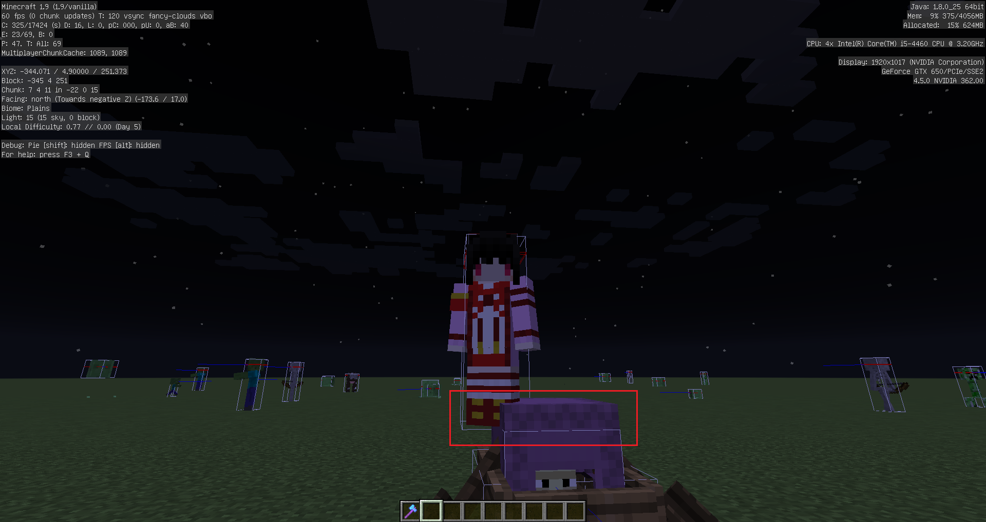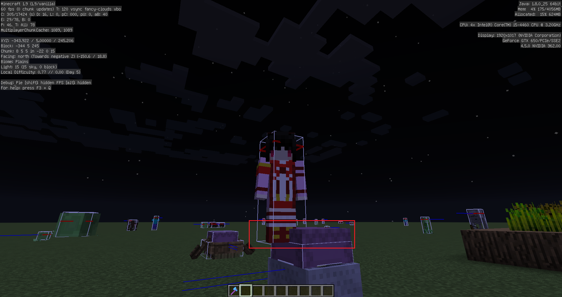 net.minecraft.entity.monster.EntityShulker.onUpdate()only updates the bounding box of the Shulker if the block position of it is notnull. However, if the Shulker is riding another entity the block position is set tonull. Another problem is that theEntityShulkerclass is not overriding the methodnet.minecraft.entity.Entity.setPosition(double, double, double), which is for example called for the riding entity when the ridden entity moves. This method sets the bounding box based on the height, which theEntityShulkerclass is not using.