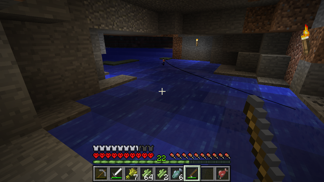 Summary: The fishing rod's line is not attaching correctly. The line appears to be connecting to thin air.