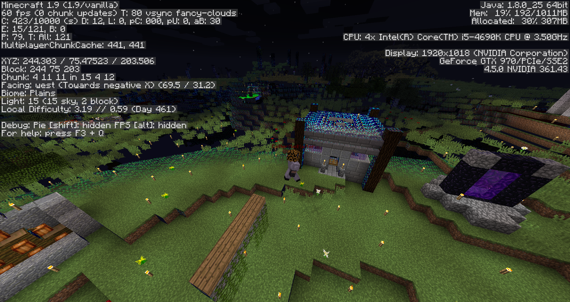 Not sure what causes this bug, but it seems to occur after a few minutes of play. The blocks a chunk or so away change to this odd blueish texture. Even farther blocks turn dark red. Leaves disappear entirely, grass seems to stay.