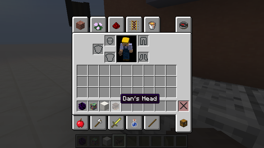 3. Move Dan's head into the fourth slot, and open the survival tab.