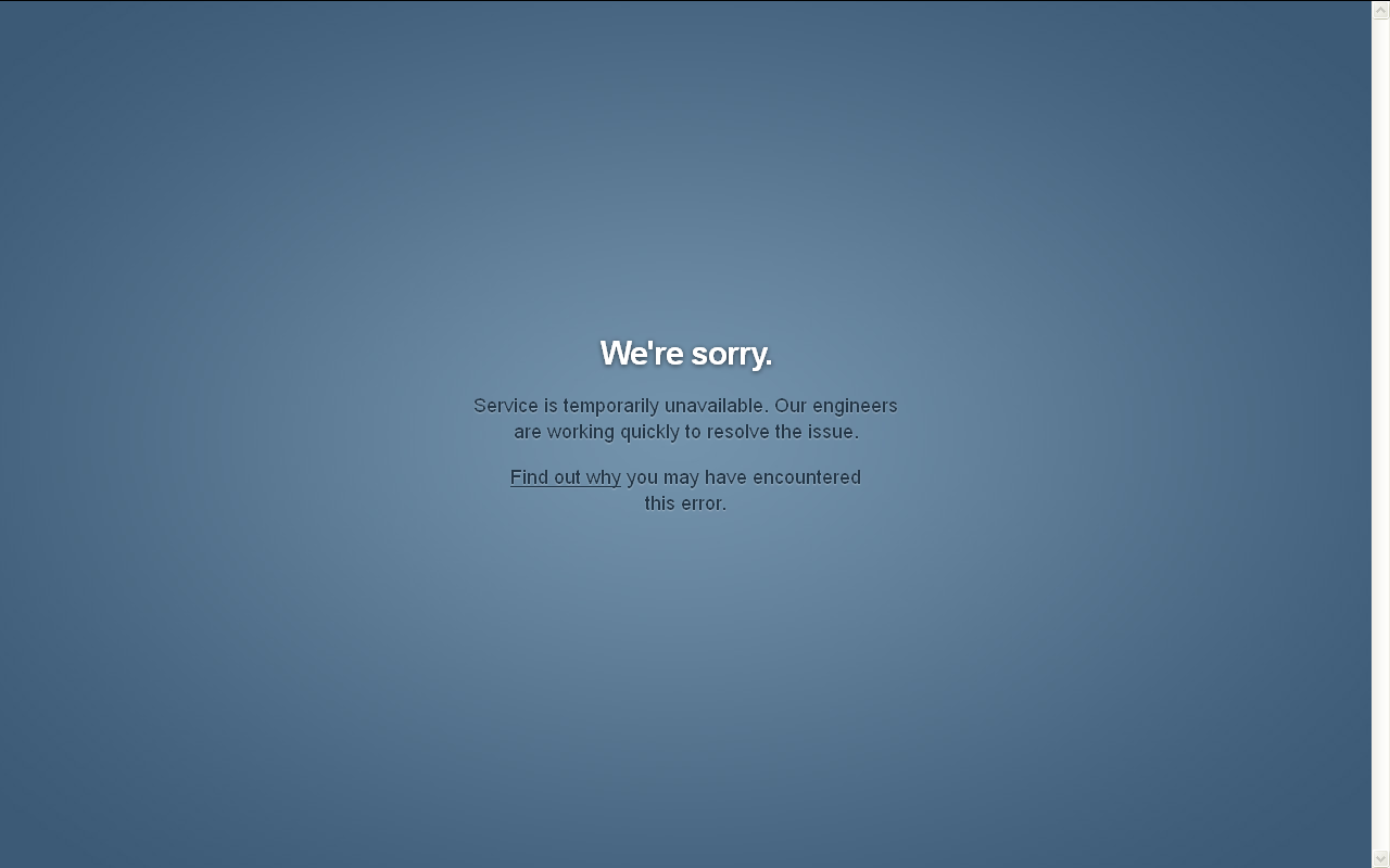 For a while today (2012-10-26), Tumblr was down, displaying an error message when attempting to load pages. The Minecraft launcher (Minecraft.exe MD5 b63ccb43f2779cbea5d8d3ce2e3d90fb) renders this error page incorrectly. The expected behavior would be to either render it correctly, or to display something else (a blank screen or custom error message).
