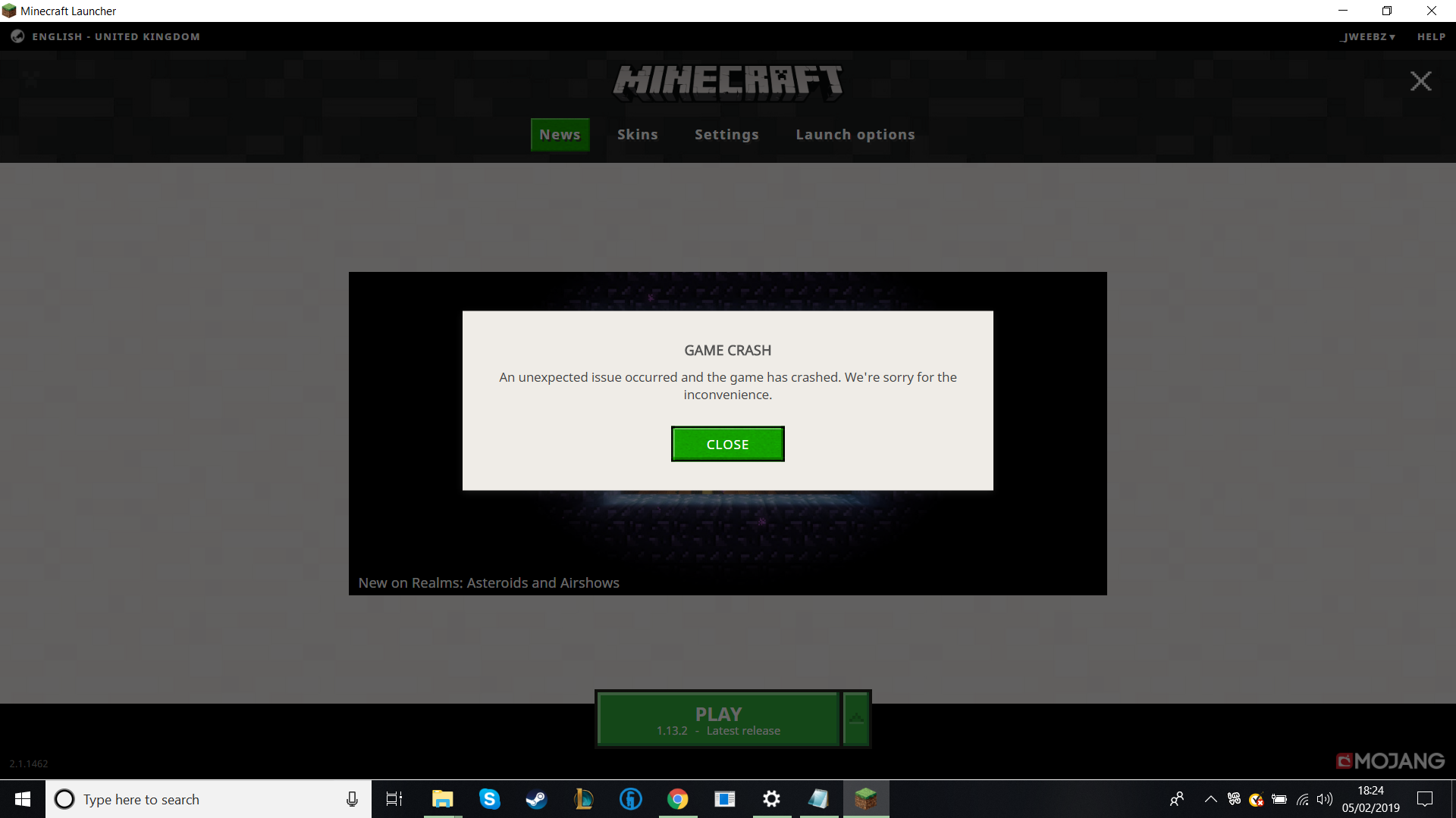 Your Minecraft version is outdated. We currently take issues for version 1.13.2.