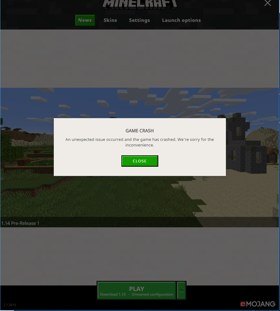 when i try to play with all version the game started but after 10 sec, i have this message and i come back to the launcher. I try everything i download a second time my game, i delete everything in the minecraft. in the appdata i change all version but nothing work i just can't play and it's a big problem and i can't see what doesn't work