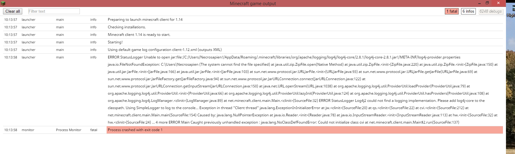 I decided to check out whats new in Minecraft. I havent played in a few years. And saw a video this morning on some new updates. So I reinstalled it. (Latest version.) Updated JAVA to latest and the game will not start. Launcher starts but when I click play I get a game crash. Cant find where it is keeping the logs so I uploaded a screenshot of the log and crash. Using windows 8.1.