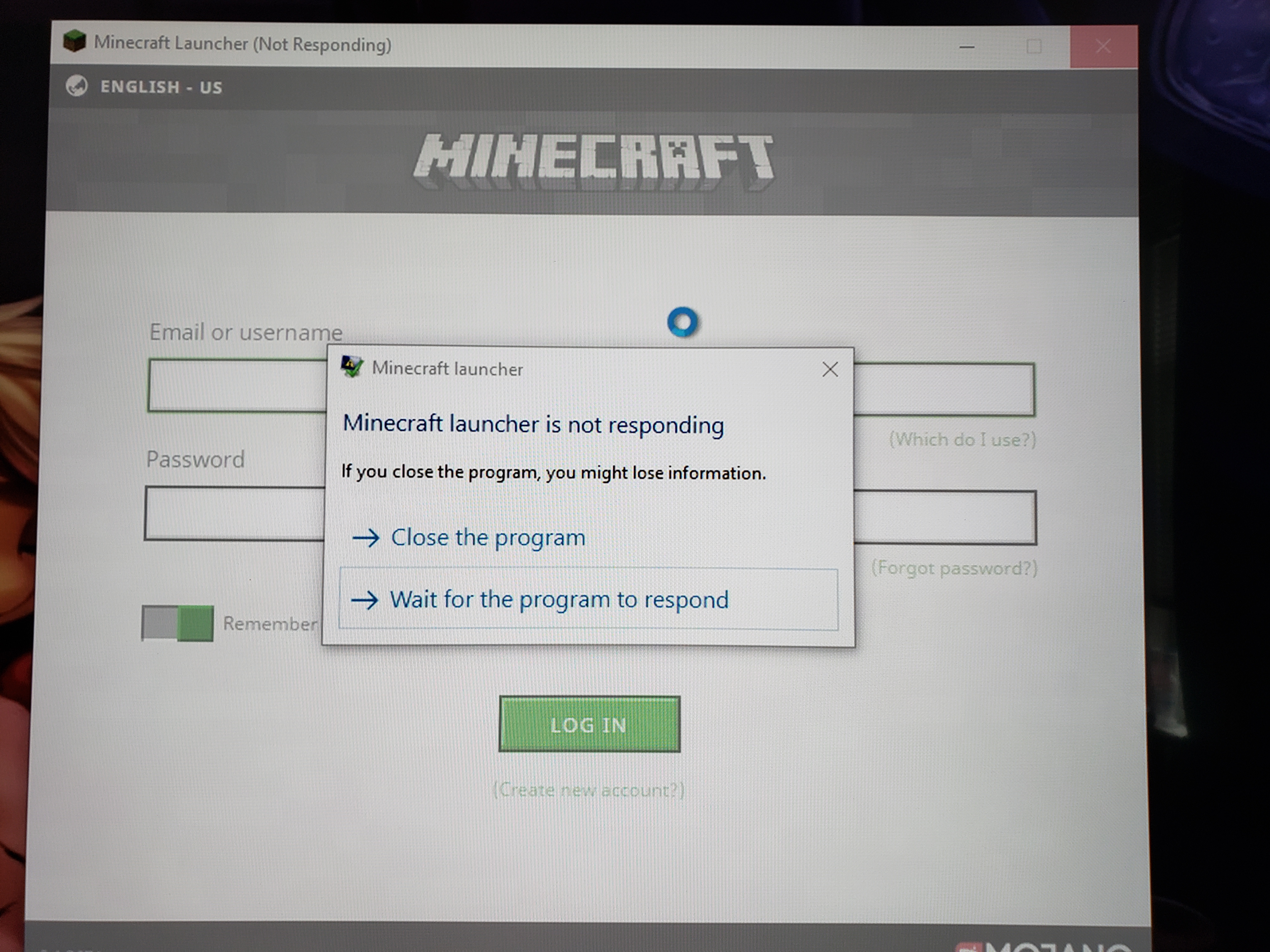 When I start launcher it starts fine. It sits at Login but as soon as I hit any key it freezes indefinitely. I have tried different compatibility settings and none fixed issue.