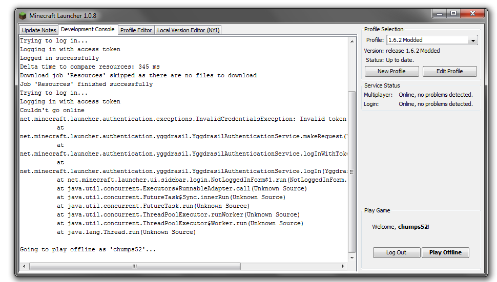 For example, if I only had a profile called "1.6.1" it would let me play online. However if I then created another profile called "1.6.2" then this new one would be online, yet "1.6.1" would then become "Play offline" only.
