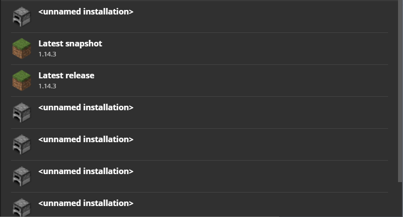 I have deleted some installations from the launcher_profiles.json but when I went back to Minecraft launcher a lot of unnamed installations appeared and I can't delete them