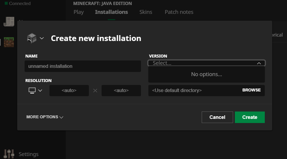 I own a server that only runs on 1.14.2, but today I tried to log in on the new launcher and it sets the default version to 1.14.3 and does not allow me to change. Under installations, when I try to change or select a new version number, it states that there are "No Options..."