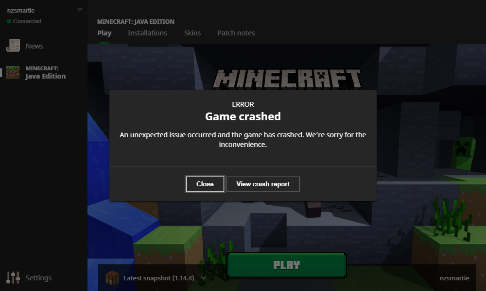 After installing the launcher and downloading the latest Minecraft (1.14.4), the launcher fails to launch the game.