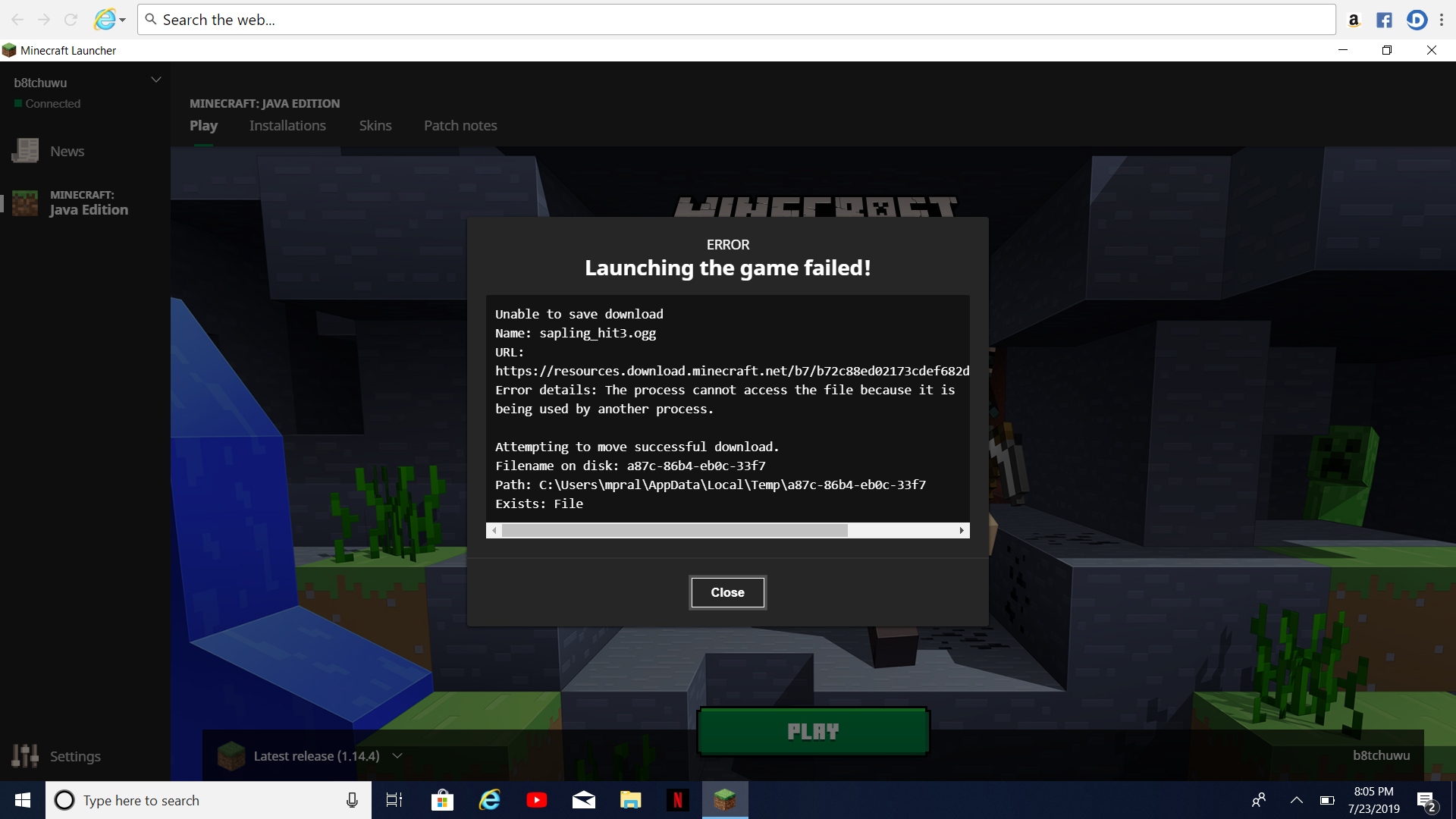 Every time that I try to play this shows up. I tried to reset my laptop but that didn't work. I don't know what this means or what I'm supposed to do.