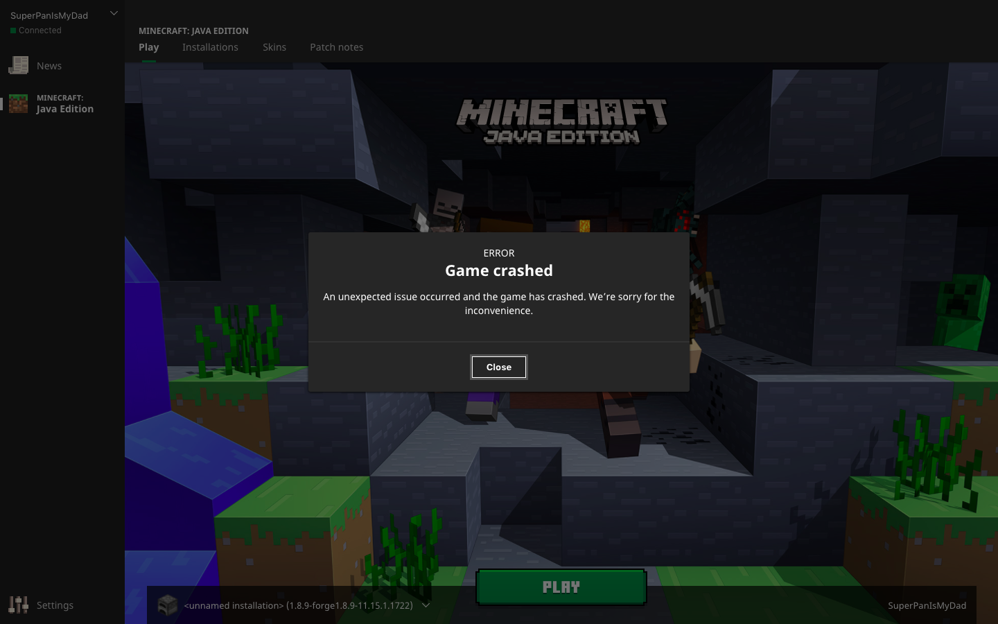 When I start minecraft i crash