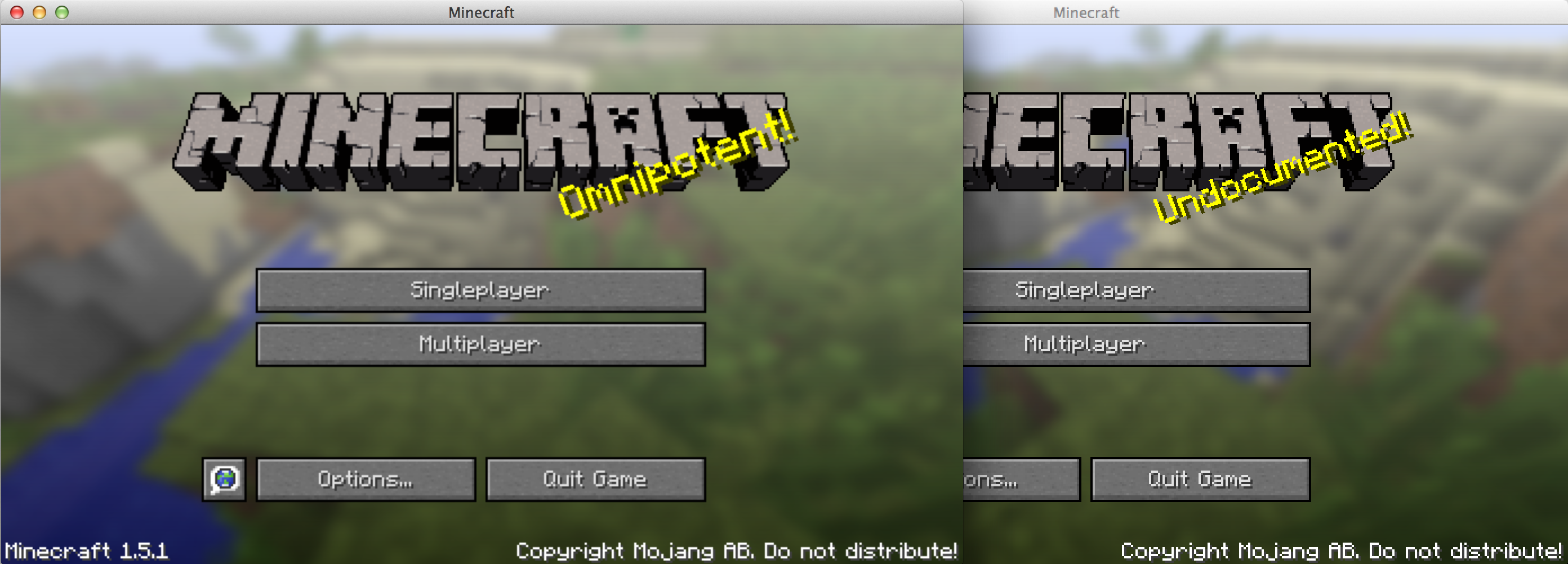 Selecting "Release 1.5.1" or "Release 1.5.2" from the newest MinecraftDev.app launcher launches the game in a blurred state - all text is blurred and apparently pixel-doubled?