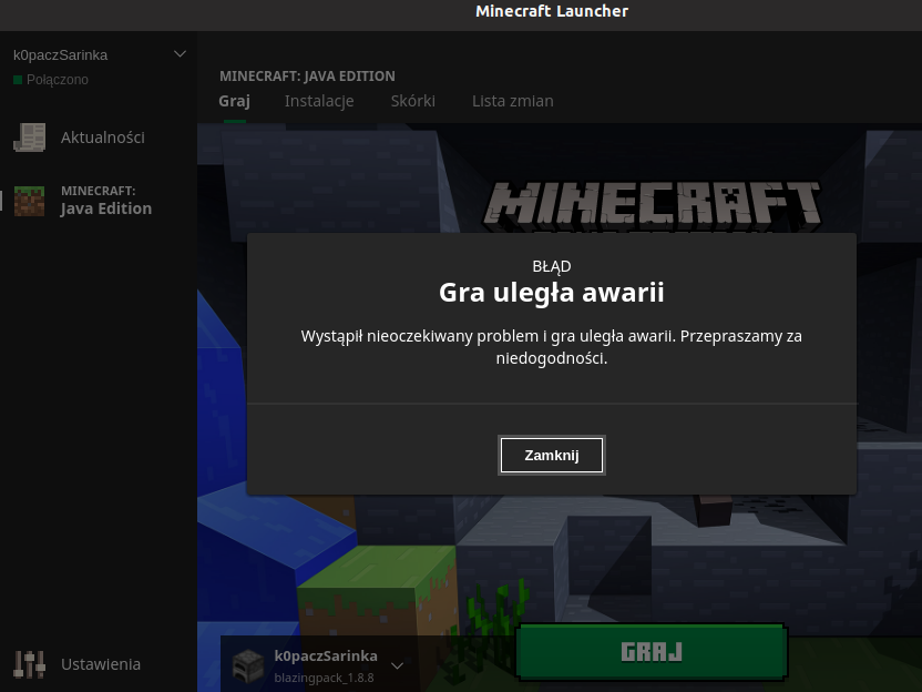 I always get an error even after uninstalling and installing minecraft the game has crashed as I have Linux Ubuntu 19.04 I do not know how to fix it could I get a link to an older version of the launcher? Please.