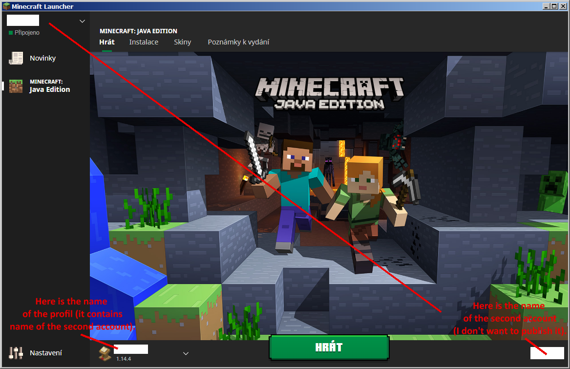 Two weeks ago it was OK, I could use both accounts. But today I don't know how to start MC with the second account.