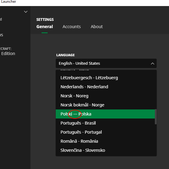 Inconsistent with literally all other languages in the launcher, the "Polski — Polska" language uses a em dash (—) instead of a hyphen ( - ) between language and country