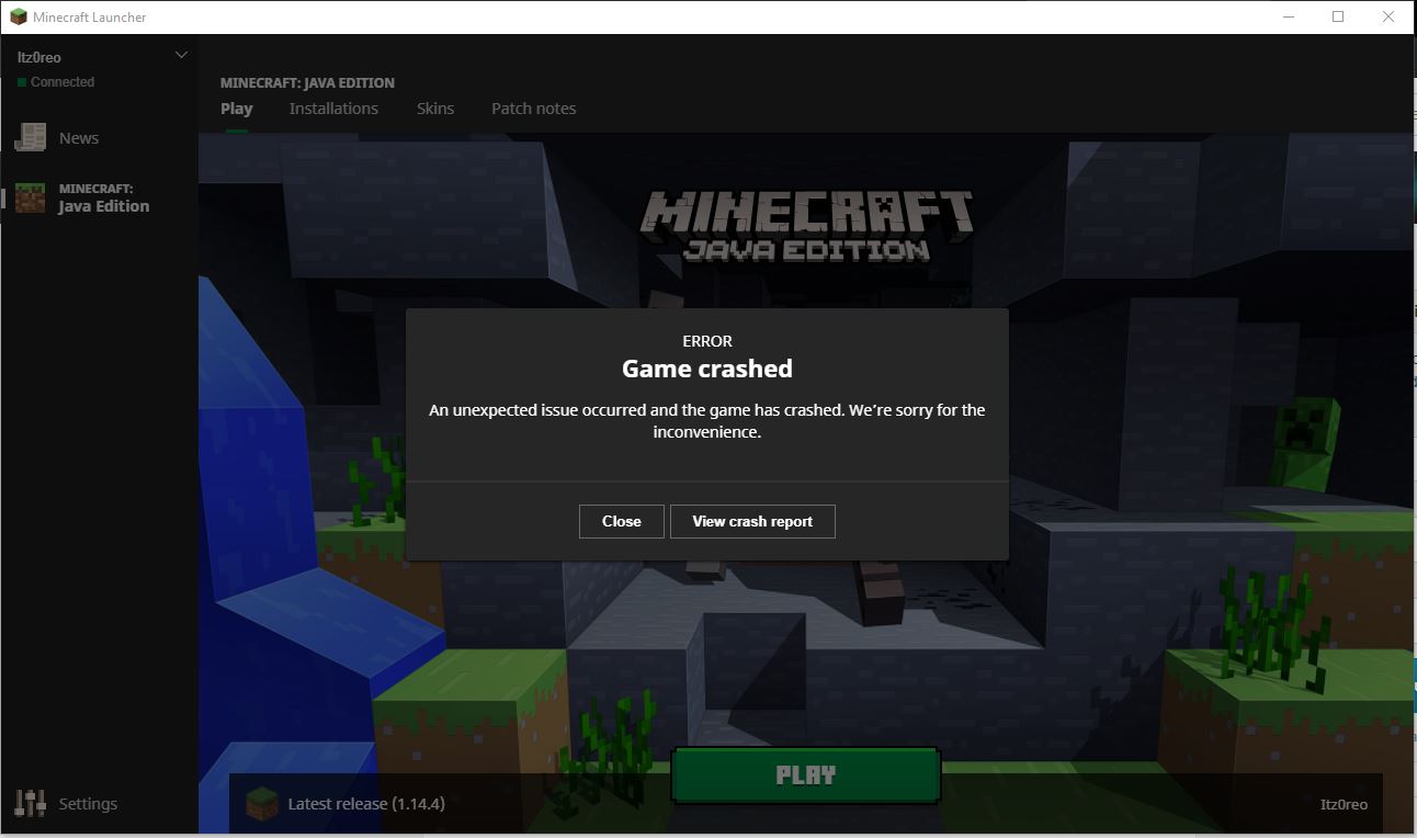 I open the Launcher, I press play but when the game finishes loading it says "Game crashed"