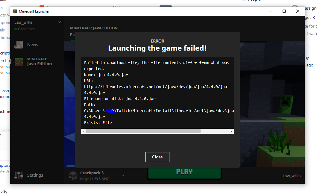 wont launch, happens with all packs on twitch.
