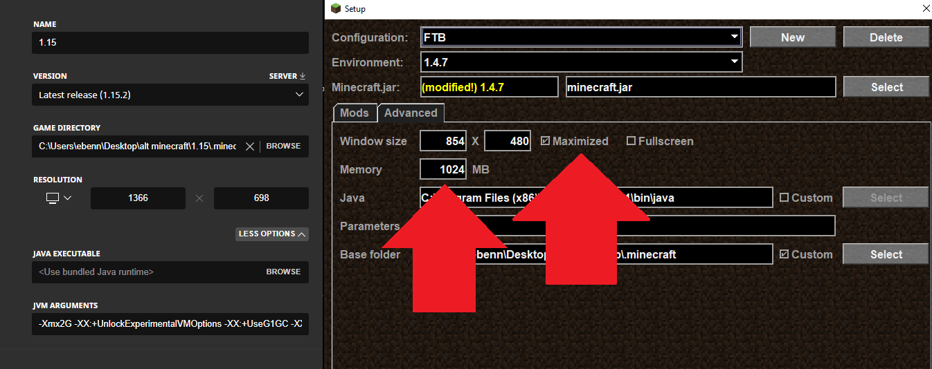 You cant start minecraft maximized or set the amount of memory you want minecraft to use.