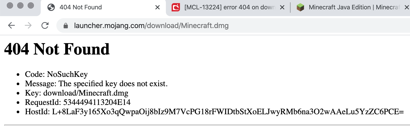 I just bought minecraft for my PC and when I try to download the Mac version (on my Mac computer) it immediately takes me to an Error 404 page.
