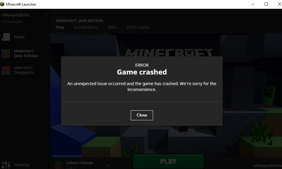 My Minecraft keeps crashing every single time I launch it. When the big MOJANG label and logo appears and there is the red progress bar on the bottom and when the bar is almost there, it somehow suddenly freezes and if I try to close it by pressing the X, it shows a notification telling me that Minecraft Java isn't responding and I could close the program or wait until it responds. I've tried leaving the program open and frozen for a whole day and nothing would happen. When I close it, the Minecraft Launcher pops up again and it says that the game has crashed. In the past 3 days, I've tried at least 30 times to launch it. I even went to the settings and tried the "Repair" option. It didn't work either. The last time it worked was 2 days ago, at midnight when I was pulling an all-nighter. I also would like to know if I am able to uninstall and reinstall Minecraft.