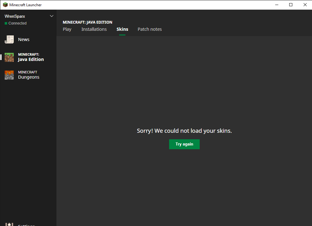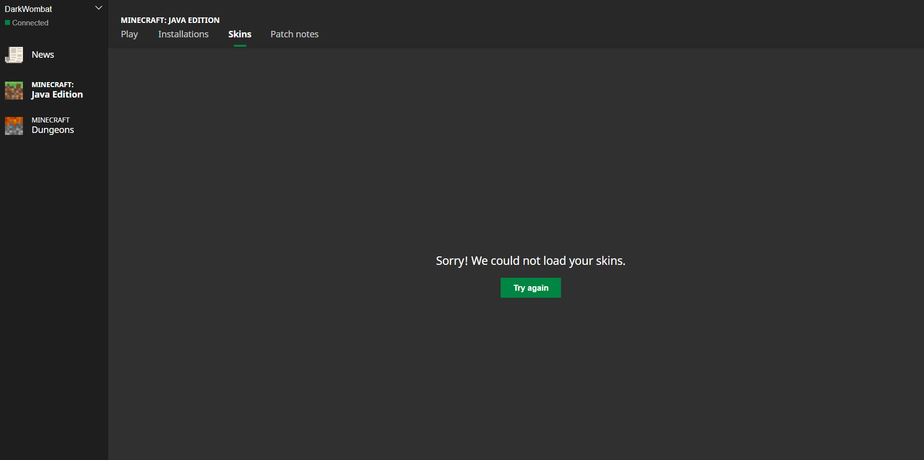 When I click my skins it shows that Sorry! We couldn't load your skins.