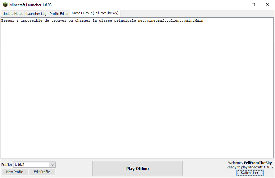 Error : can't find the principal classe net.minecraft.client.main.Main