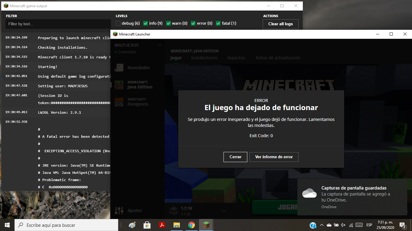 I went to check my .minecraft since the game did not work and I got the Exit Code 1 error, then I found some files log called hr_err_pid. I don't know what it is but since then minecraft has not opened for me
