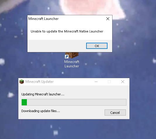 I woke up today and Minecraft was deleted. I reinstalled it and when it tries to update the launcher it gets stuck and then says it can not update the native launcher. I have tried to repair, uninstalling and reinstalling, disabling antivirus, restarting, installing java, compatibility versions tab, and installing the EXE version. Everything produces the same results. I am at a loss as to what to do.