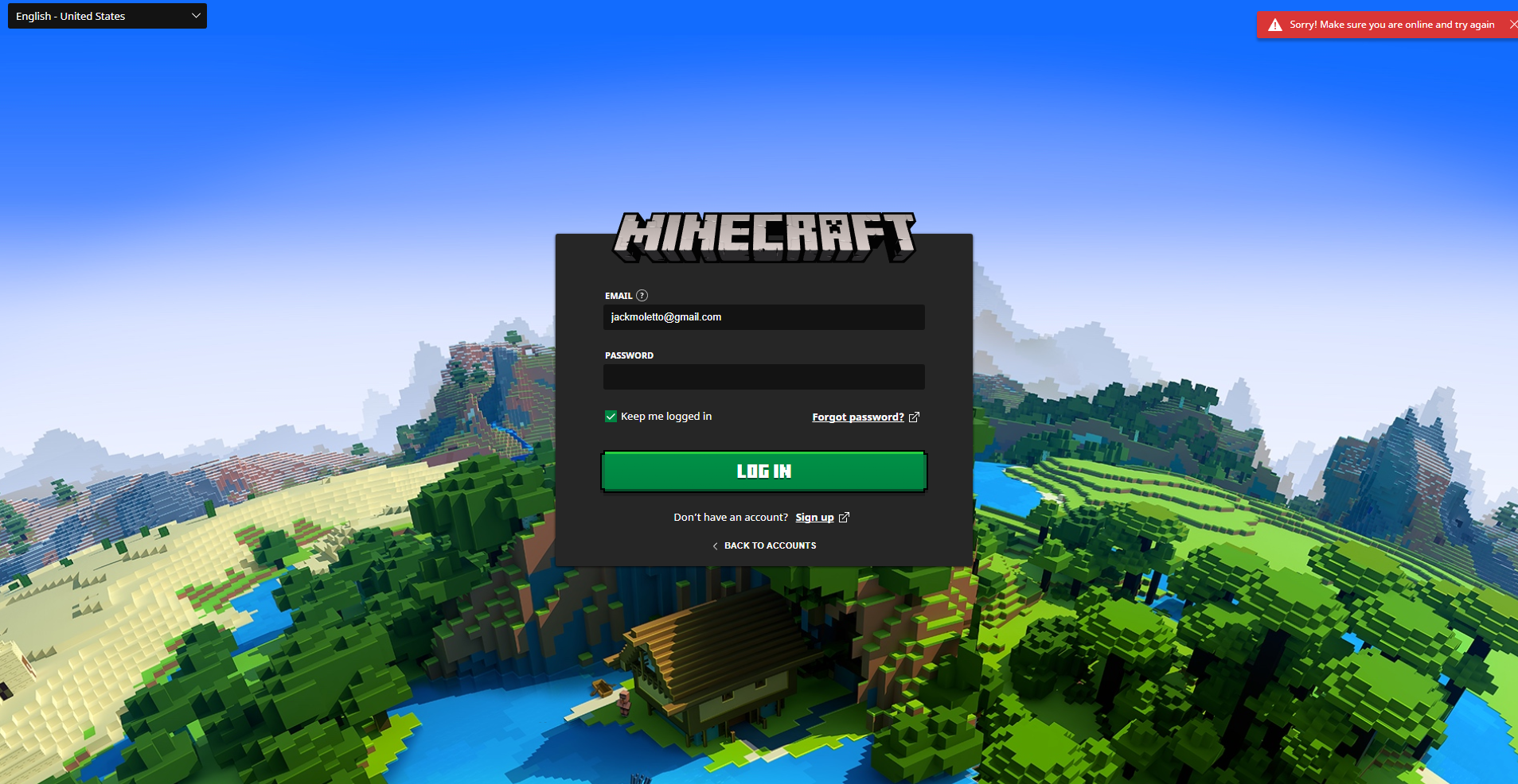 It wont let me log into any account says i have no connection