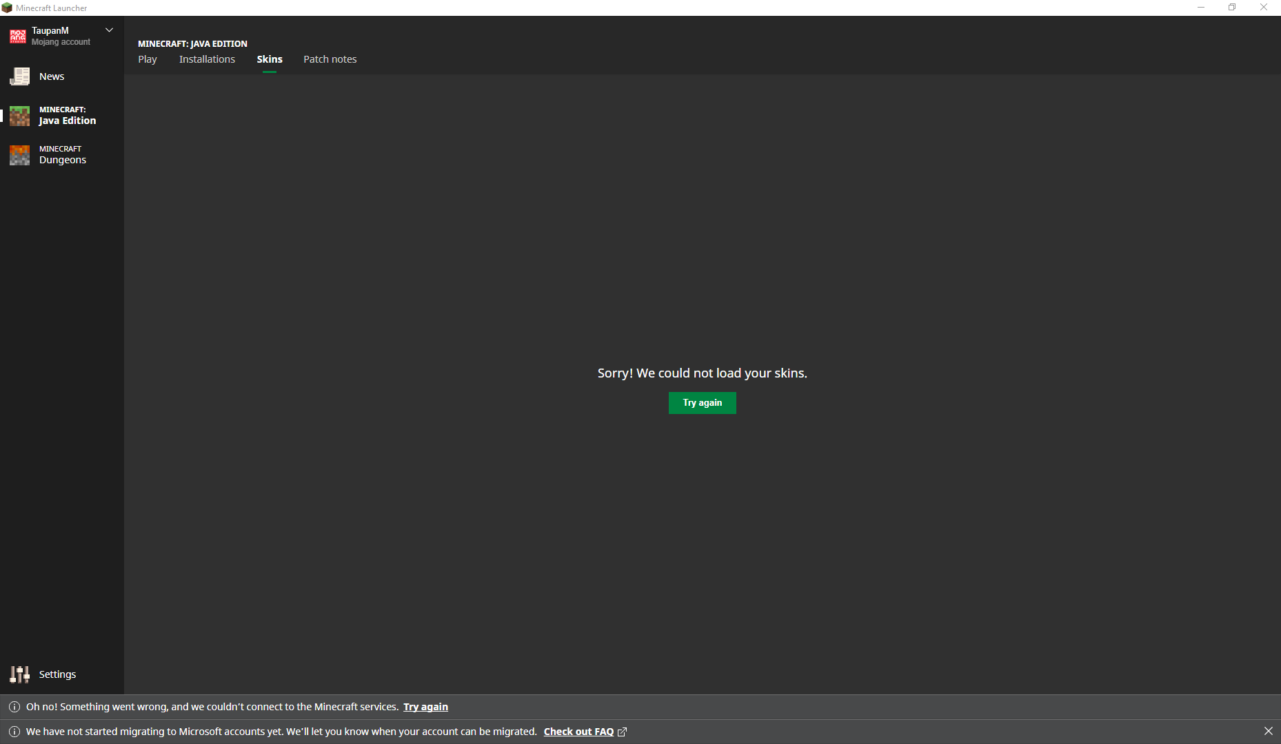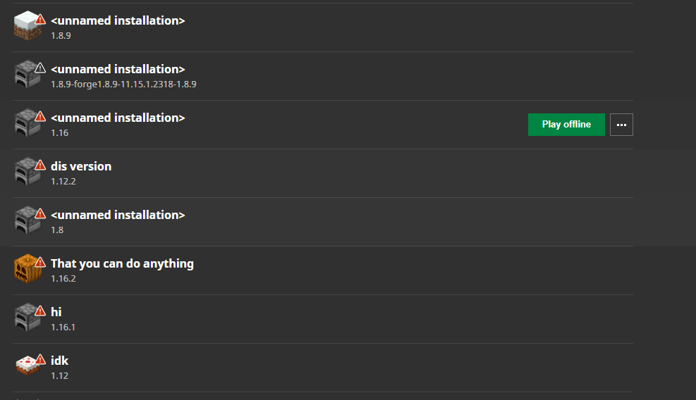 so one when i want to play Minecraft the launcher updated but launcher says "couldn't connect to Minecraft services.and I don't know why some of my installation is has warning symbol.also my launcher kept saying "play offline".and seriously I don't know what is happening.