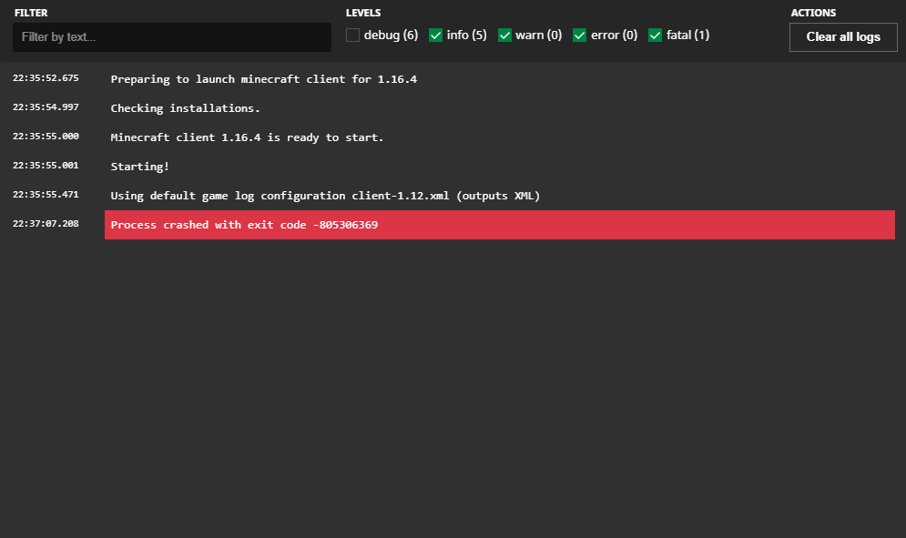 I Keep Every Time I Click Play, It Will Load to about 70-80% and Crash, With the message : An unexpected issue has occurred and the game has crashed. We're sorry for the inconvenience. Exit Code : 0. What The Logs Say, is : Process crashed with exit code -805306369.