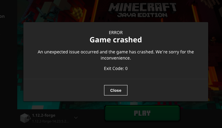 just trying to play version 1.12.2 with forge but keeps coming up with 'Exit Code:0' the forge version i'm using is 'forge-14.23.5.2854'