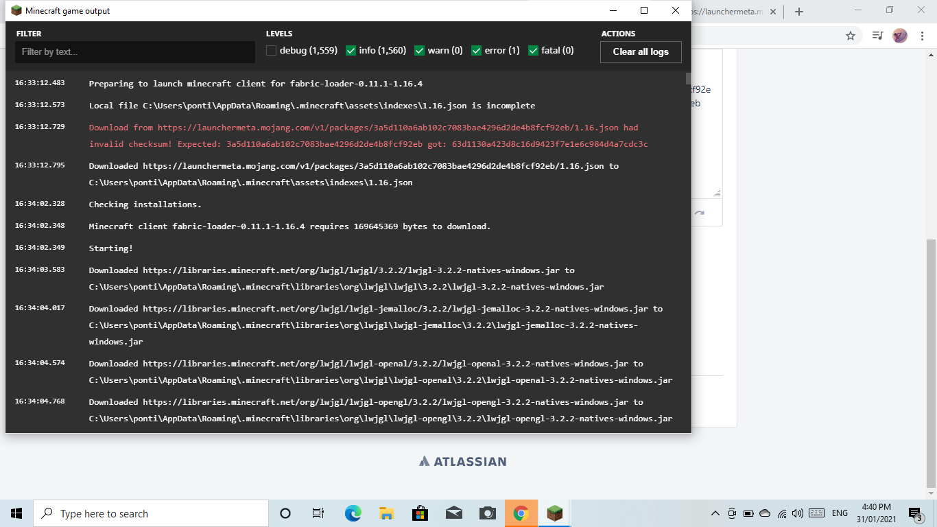 Download from https://launchermeta.mojang.com/v1/packages/3a5d110a6ab102c7083bae4296d2de4b8fcf92eb/1.16.json had invalid checksum! Expected: 3a5d110a6ab102c7083bae4296d2de4b8fcf92eb got: 63d1130a423d8c16d9423f7e1e6c984d4a7cdc3c