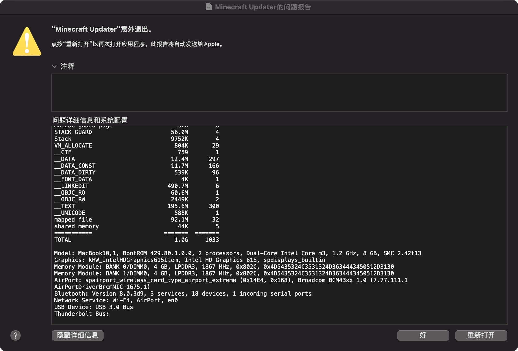 Please attach crash reports, log files and screenshots as they are instead of pasting them into a document.
